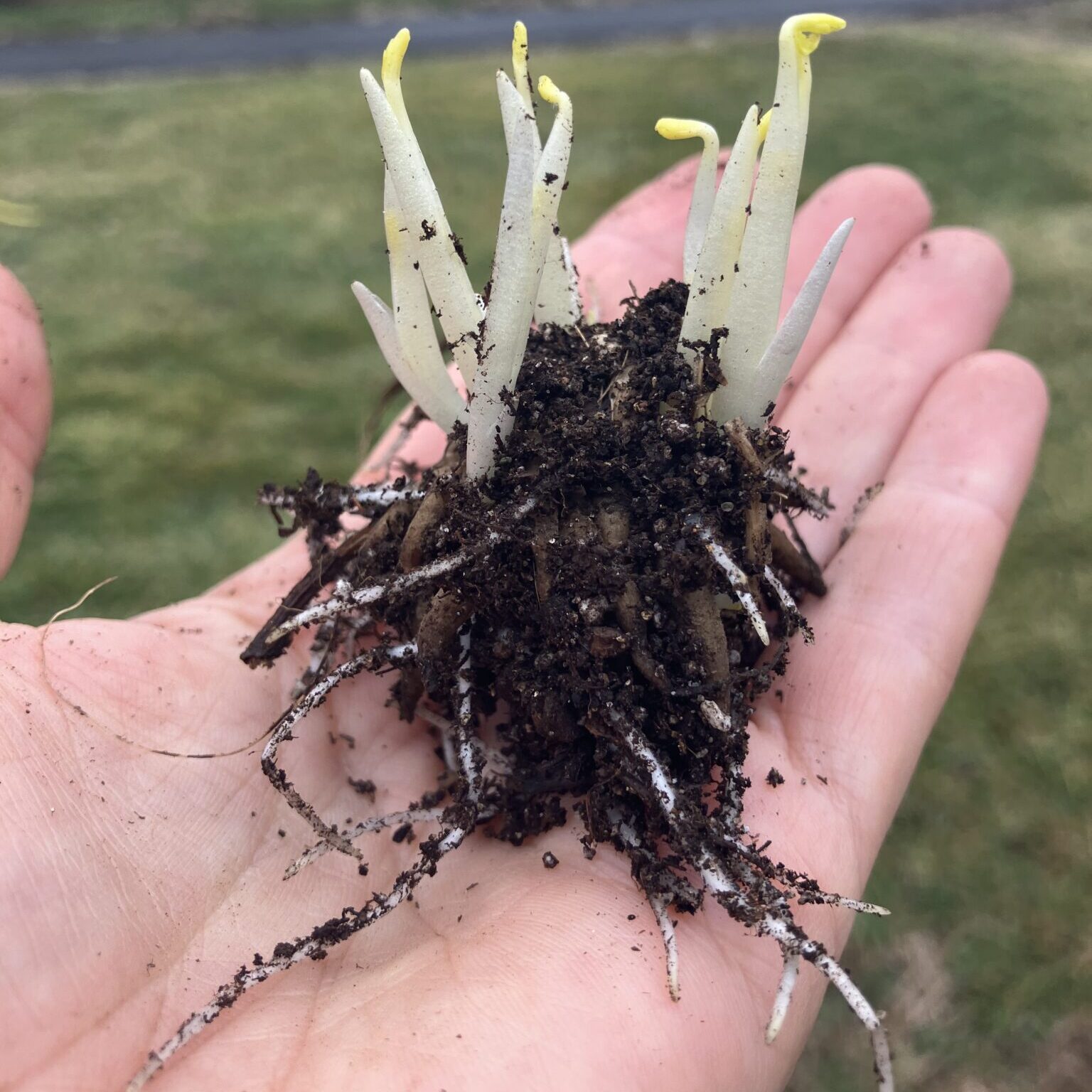 After about two weeks, you’ll notice tiny white “hairs” forming on the corms. That’s a good sign! These are new roots developing, and it means your corms are ready to be planted in the ground as soon as possible.
